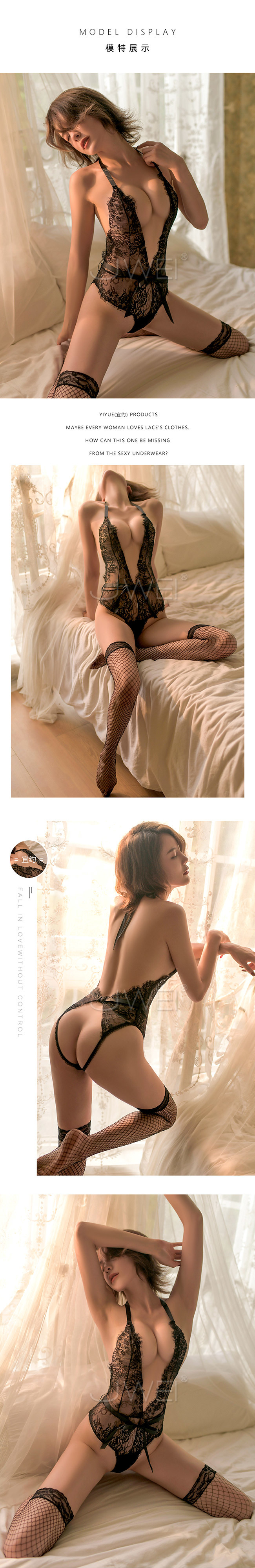 ◇◆典雅美人.深V露臀睫毛蕾絲透視連身衣(白色)◆◇