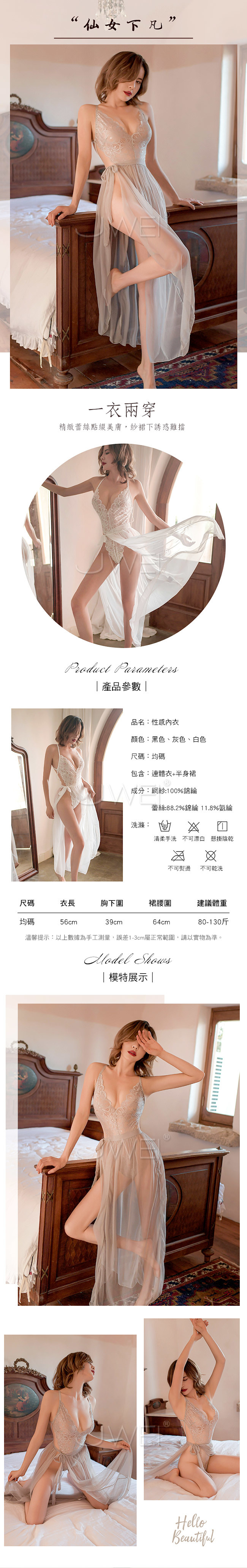 ◇◆野媚舞姬.透視網紗裙+性感蕾絲連身衣套裝二件組(白色)◆◇
