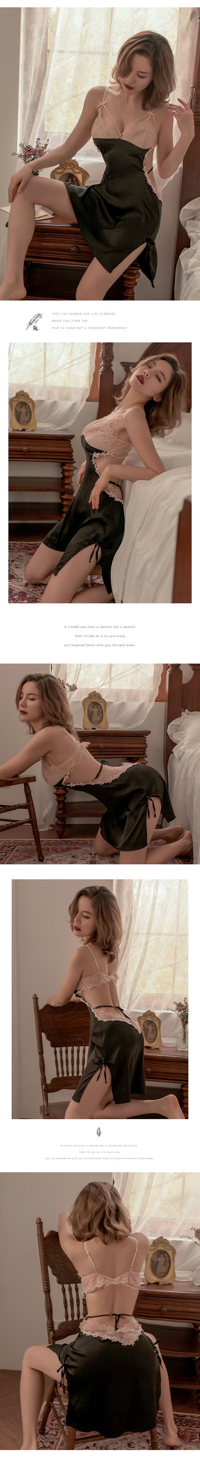 撞色透視蕾絲深V,性感酥胸若隱若現,