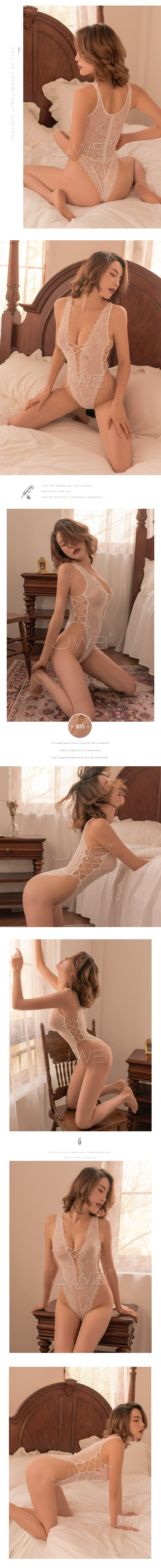 牢牢相繫.性感透視蕾絲深V高衩連體衣(黑色)