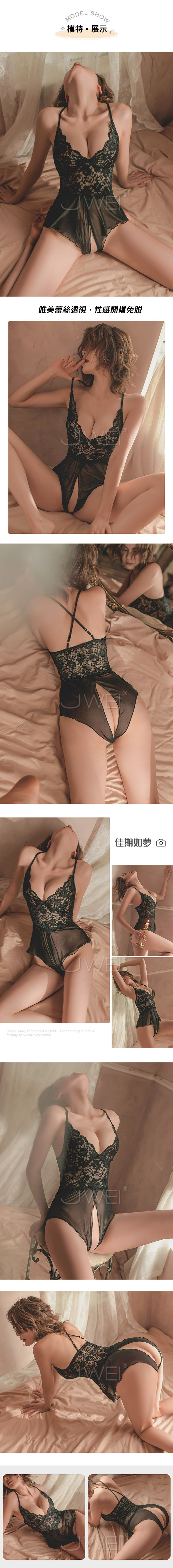 微醺夏夜.性感開襠蕾絲連體衣(酒紅色)