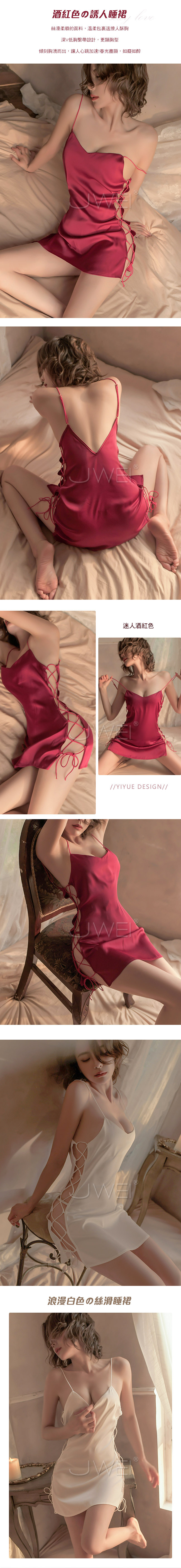 ◇◆戀情中毒.絲滑側繫帶V領吊帶睡裙(綠色)◆◇