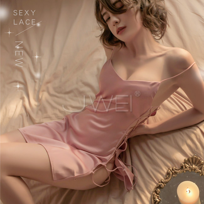◇◆戀情中毒.絲滑側繫帶V領吊帶睡裙(粉色)◆◇