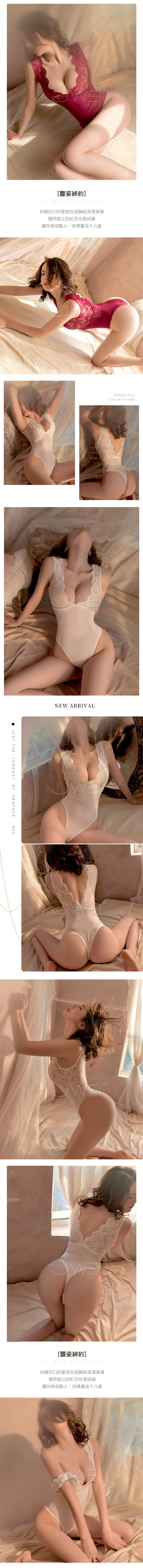 ◇◆心儀愛撫.火辣蕾絲鏤空開襠連體衣(酒紅色)◆◇