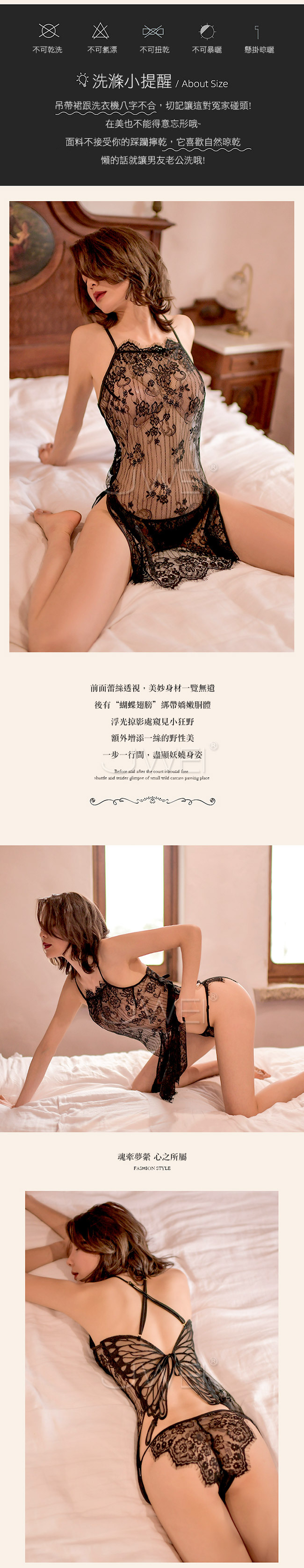 蝴蝶美人.性感蕾絲誘惑水溶蝴蝶睡衣(黑色)