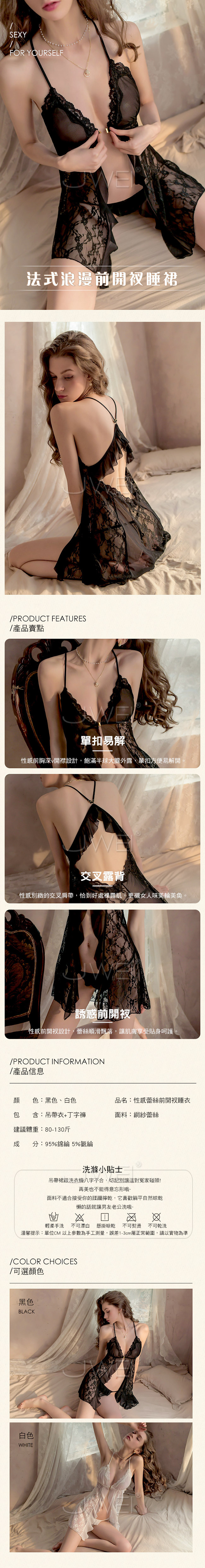 前開衩設計,蕾絲順滑飄落,讓肌膚享受貼身呵護。
