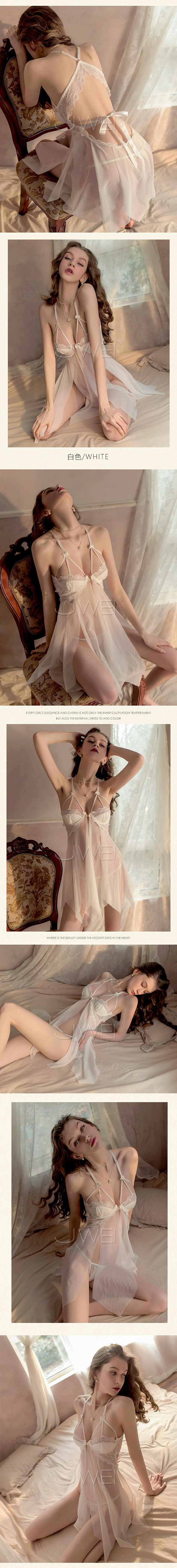 高嶺之花.蕾絲吊帶網紗花瓣睡裙(白色)