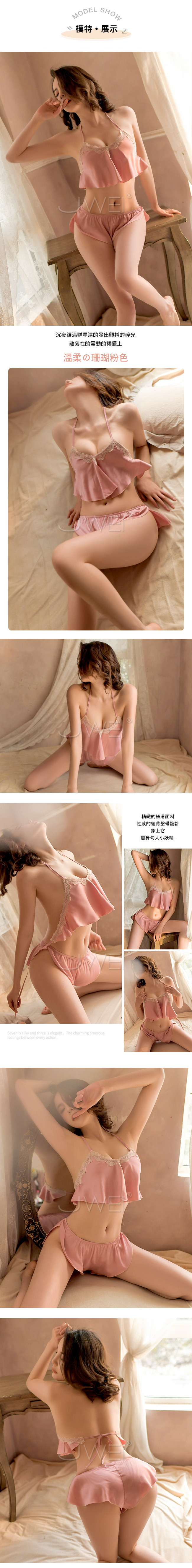 ◇◆甜蜜生活.絲滑肚兜式火辣蕾絲睡衣(珊瑚粉)◆◇