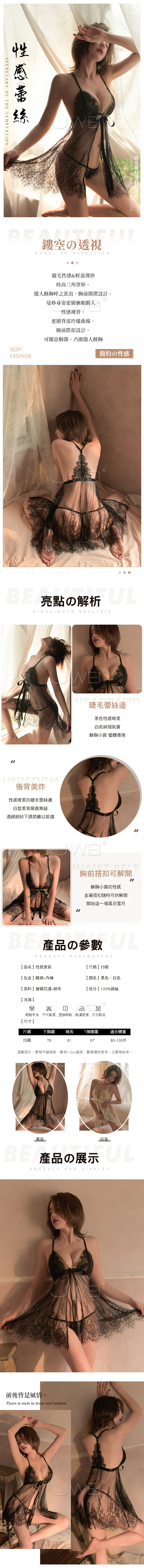◇◆情遇甜心.深V唯美前衩睫毛蕾絲透視睡衣(白色)◆◇