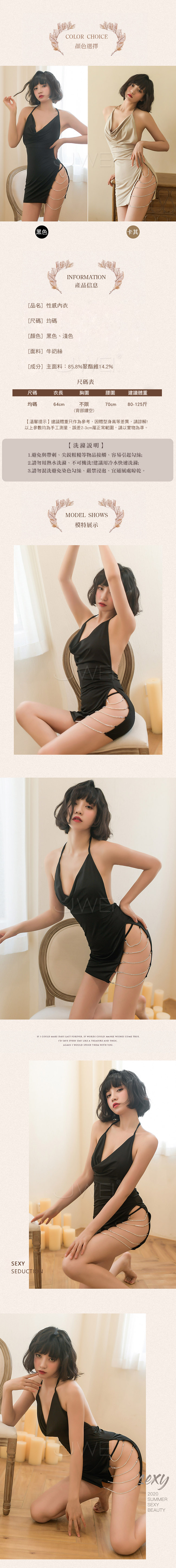 ◇◆誘人所在.復古掛脖繫帶性感露背側開衩睡衣(黑色)◆◇