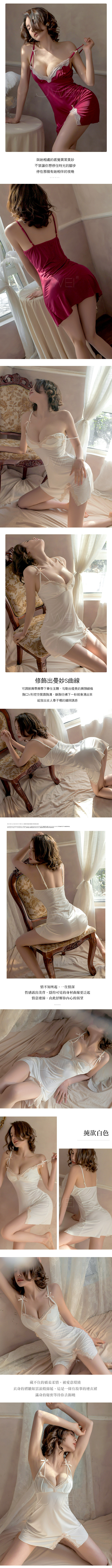 愛愛達令.側開衩顯瘦吊帶蕾絲睡裙(酒紅色)