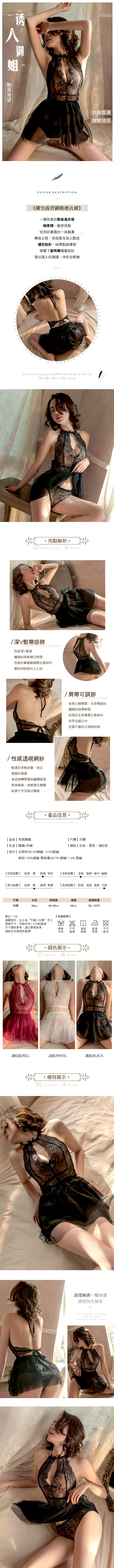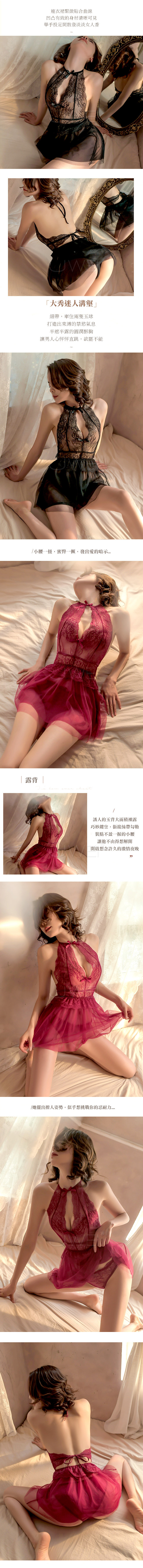 調教願望.透視網紗蕾絲掛脖睡裙(白色)