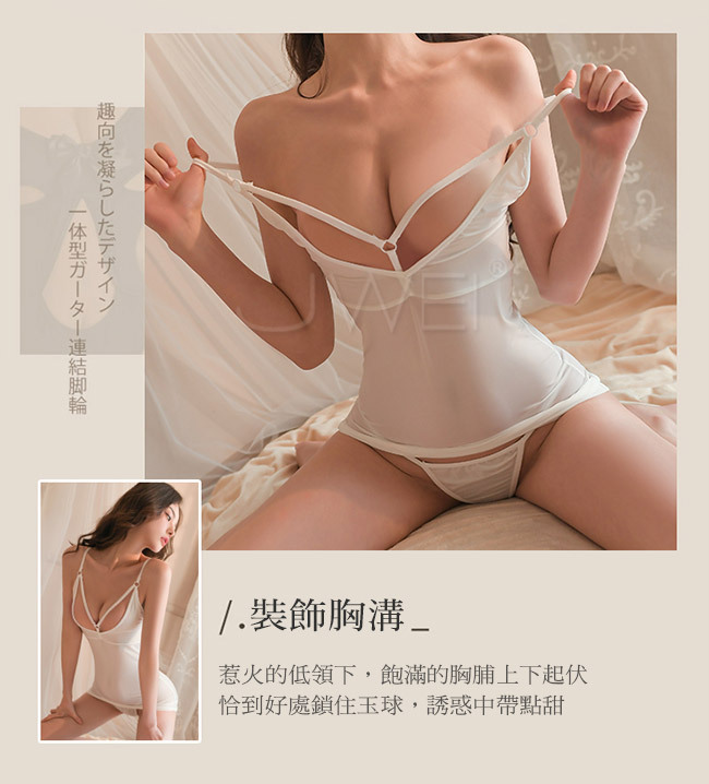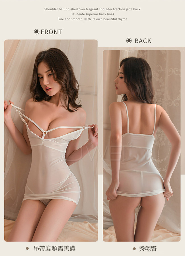 ◇◆深V悸動.性感鏤空顯胸溝吊帶裙2件組(白色)◆◇