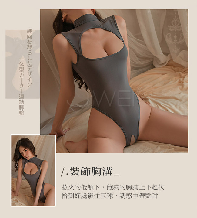 ◇◆瞹昧觸動.性感鏤空顯胸溝露背開檔連體衣(黑色)◆◇