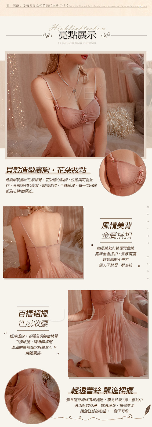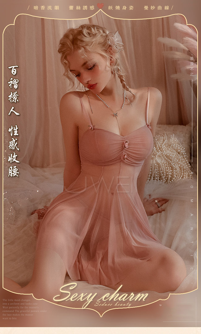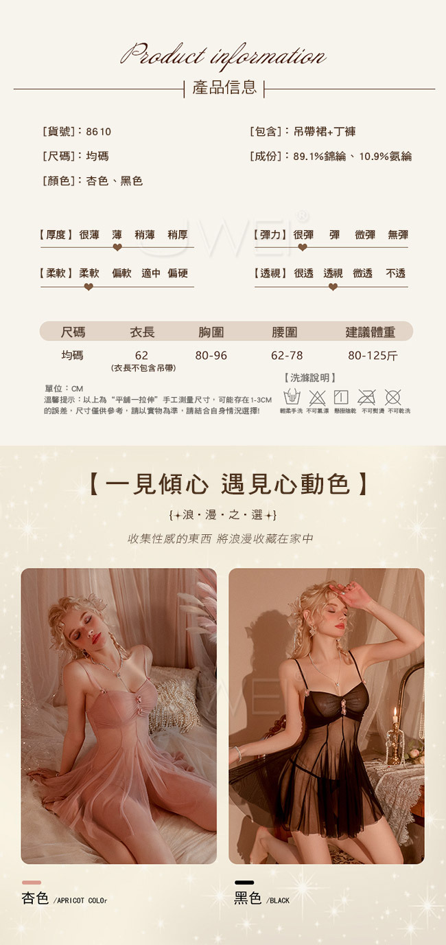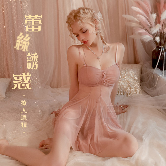 ◇◆甜蜜心動.撩人透視露背輕透蕾絲睡裙2件組(杏色)◆◇