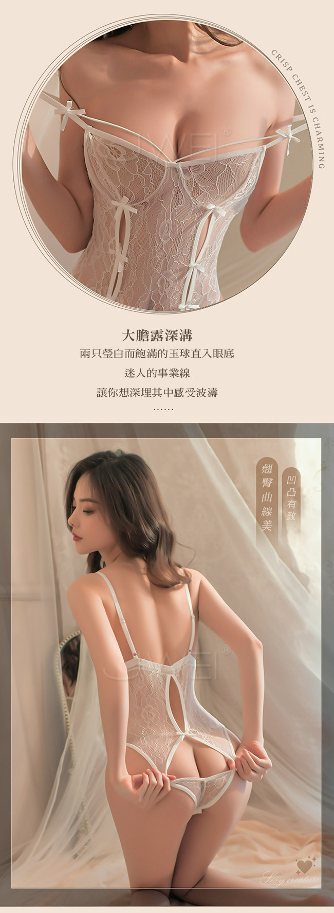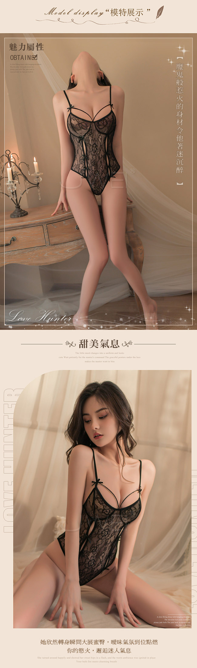 情綁之夜.深V誘惑露溝露臀蕾絲連體衣(黑色)