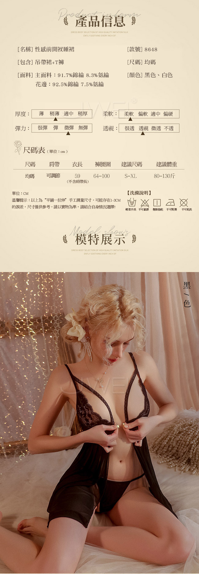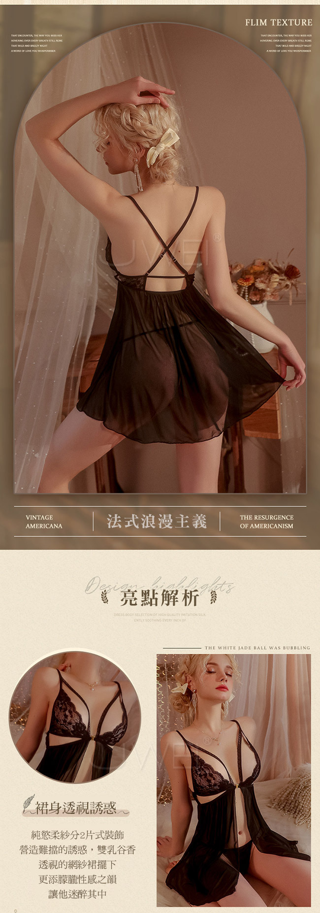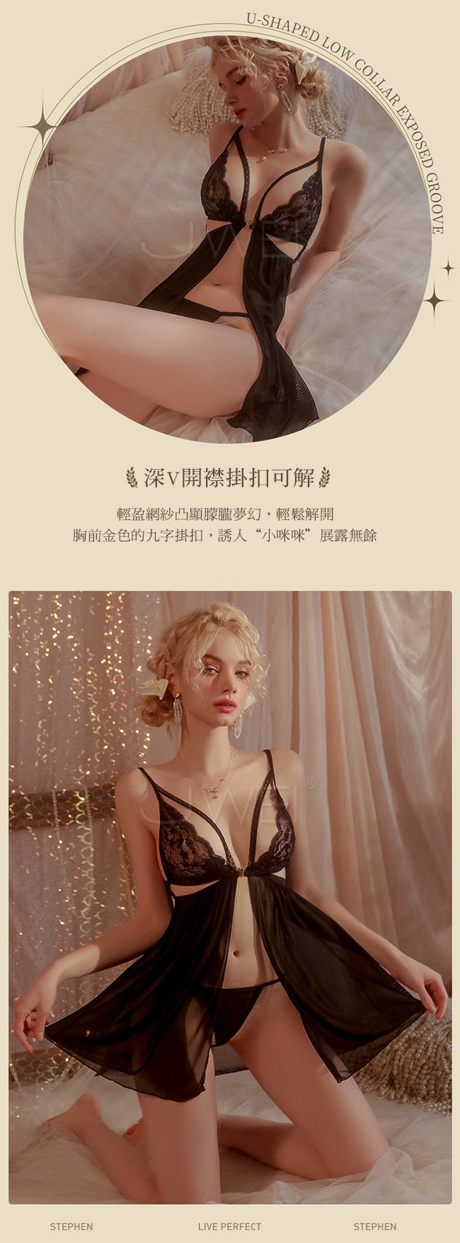 馨香麗影.性感透紗露溝前開衩睡裙2件組(白色)