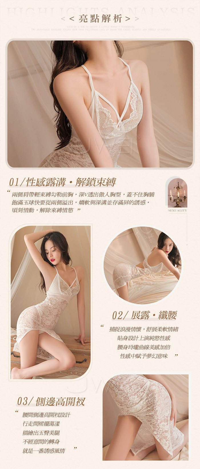◇◆偷心威士忌.性感蕾絲透膚腰間側高開衩連身裙(白色)◆◇