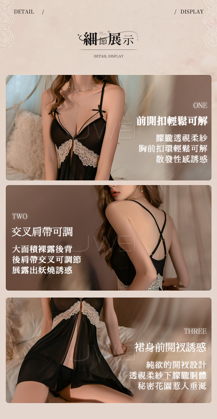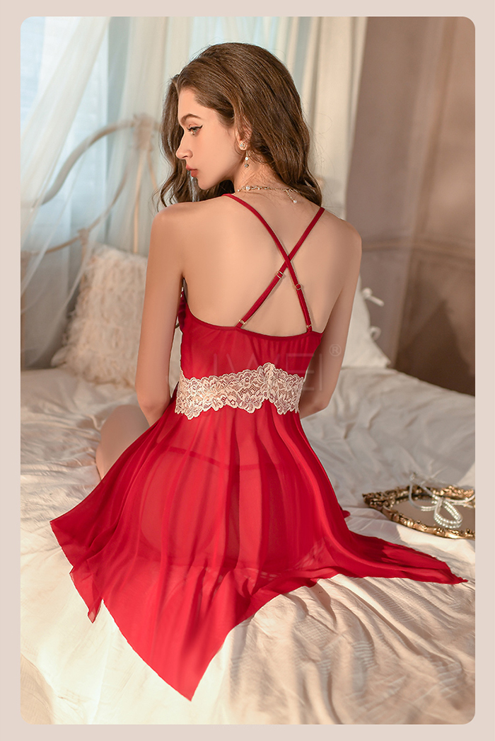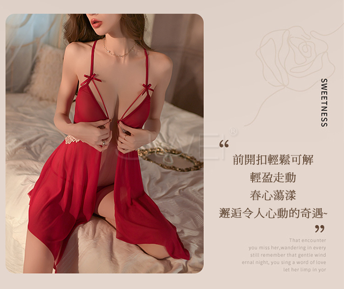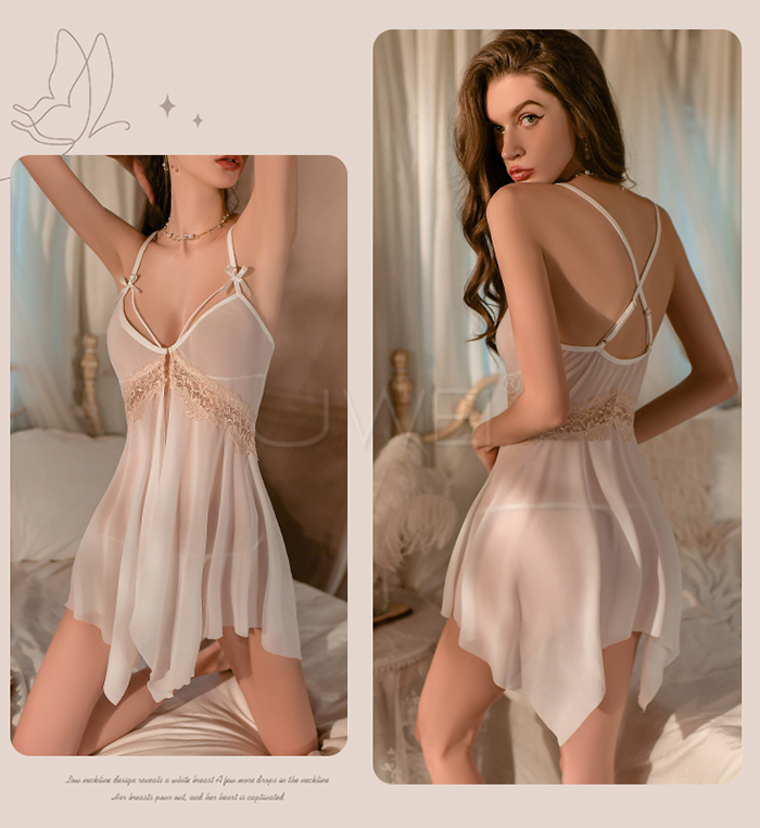 維納斯女神.法式浪漫深V誘惑透視睡衣-白