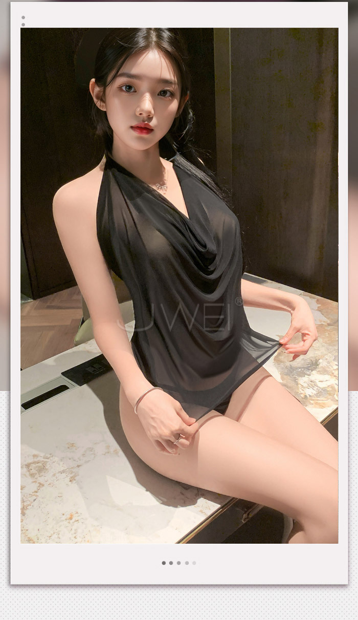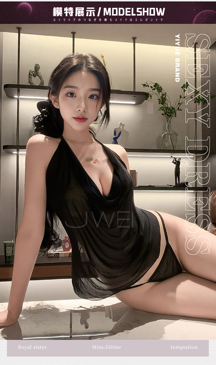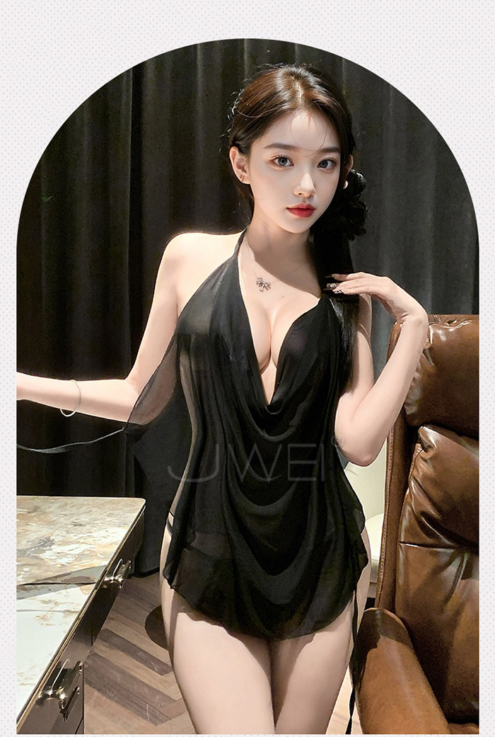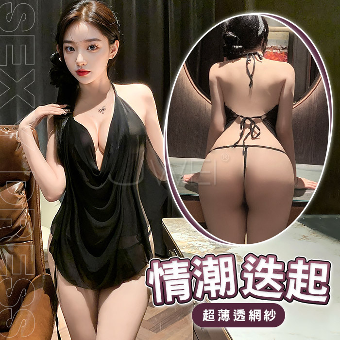 情潮迭起.純欲堆堆領掛脖繫帶肚兜兩件套裝-黑色