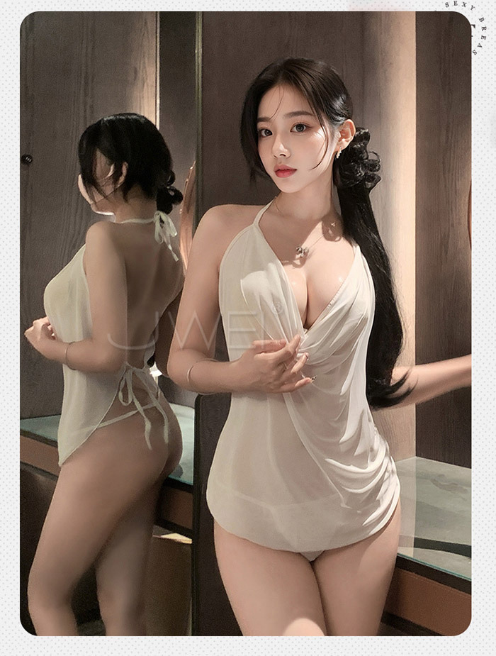 情潮迭起.純欲堆堆領掛脖繫帶肚兜兩件套裝-白色