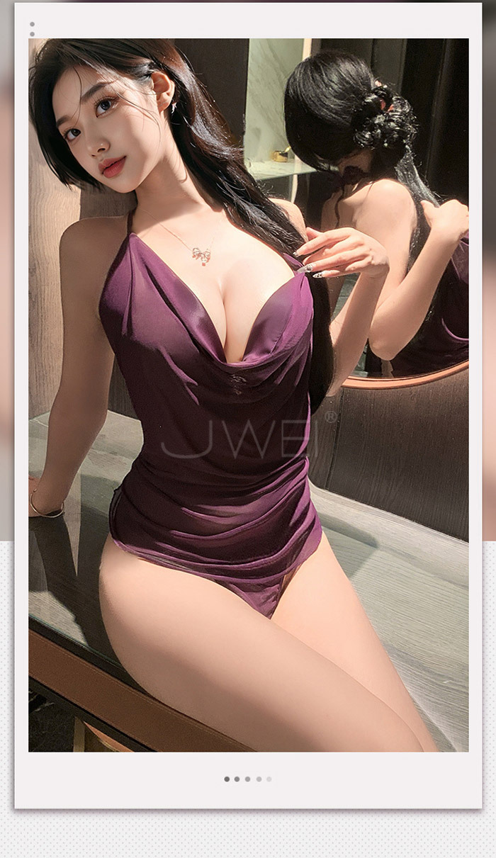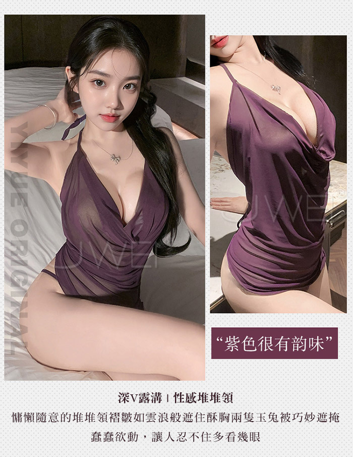 情潮迭起.純欲堆堆領掛脖繫帶肚兜兩件套裝-紫色