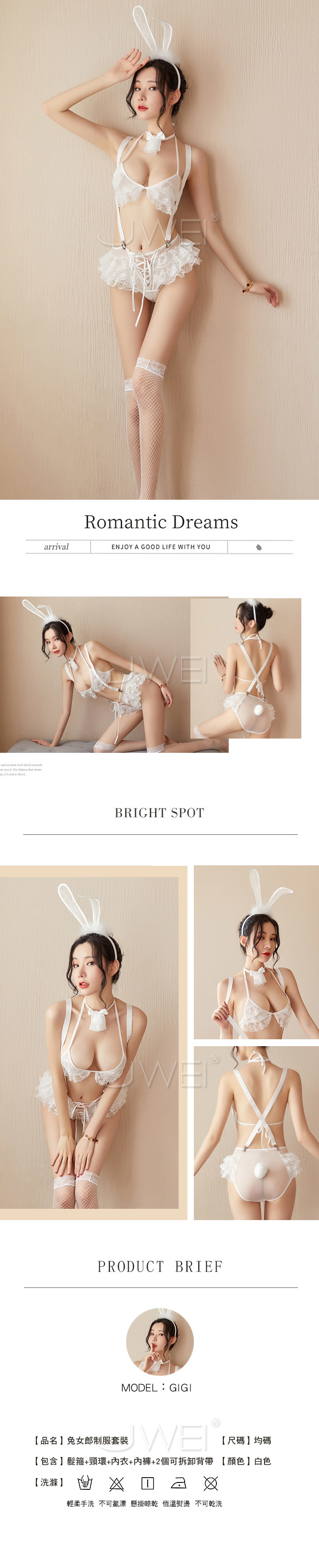 ◇◆華麗焦點.激情蕾絲三點式兔女郎套裝五件組(白色)◆◇