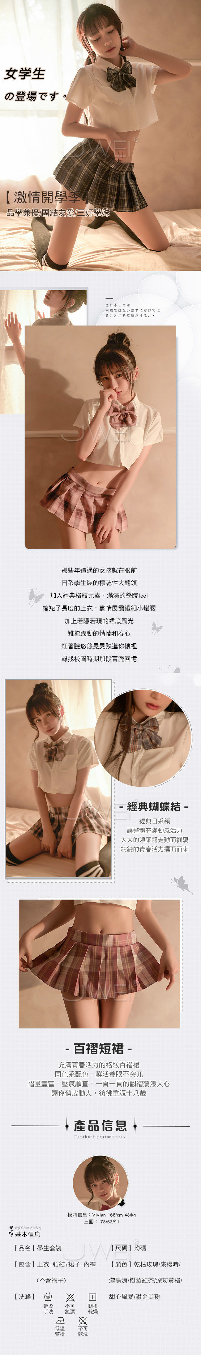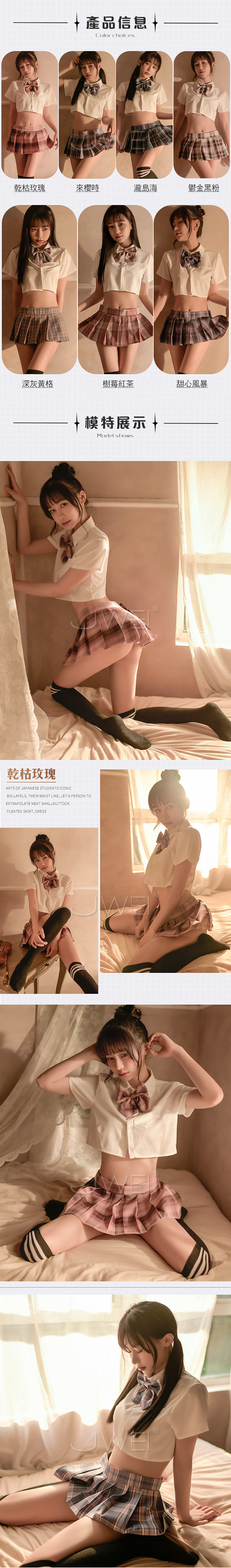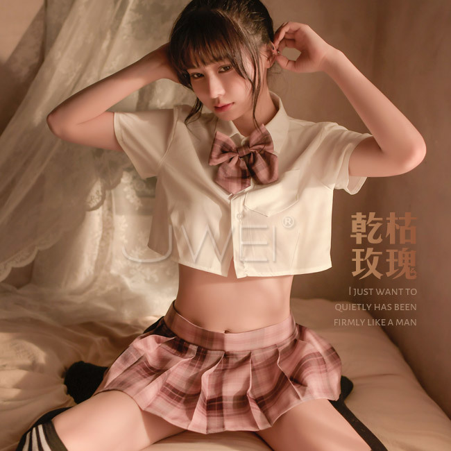 幸福包圍.百褶短裙學生套裝四件組(乾枯玫瑰)