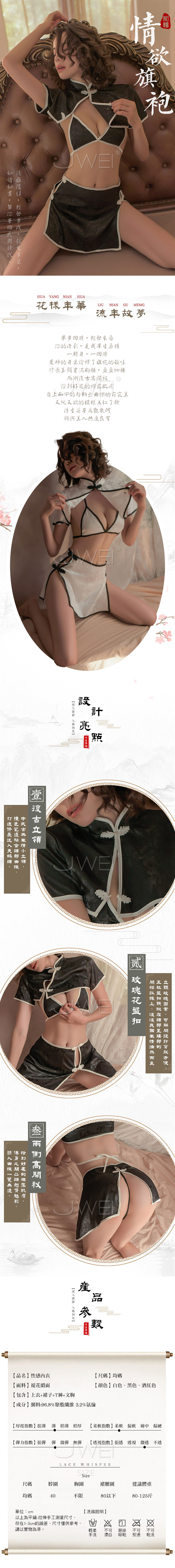 ◇◆流年故夢.復古立領鏤空旗袍套裝四件組(黑色)◆◇