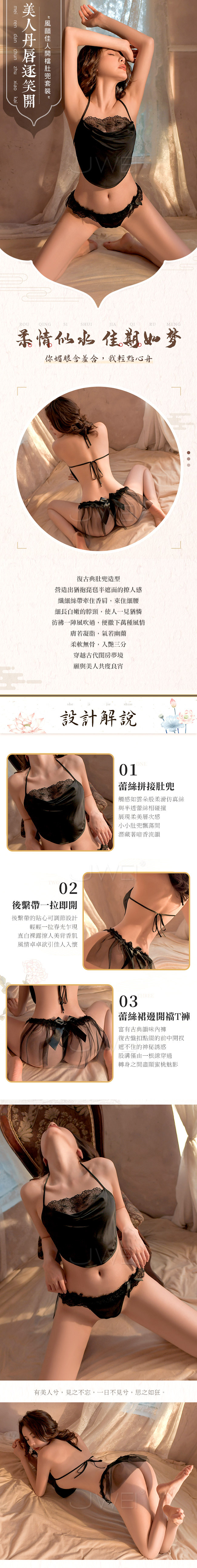 丹唇美人.蕾絲裙邊繫帶肚兜套裝(白色)