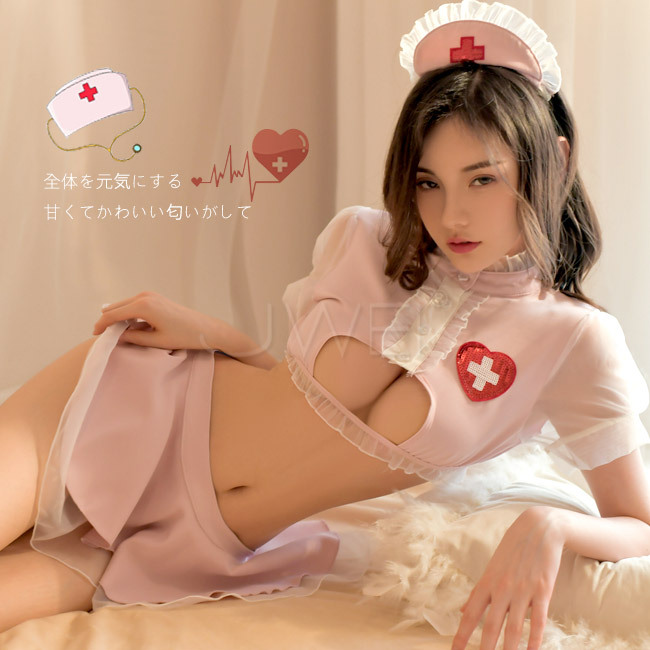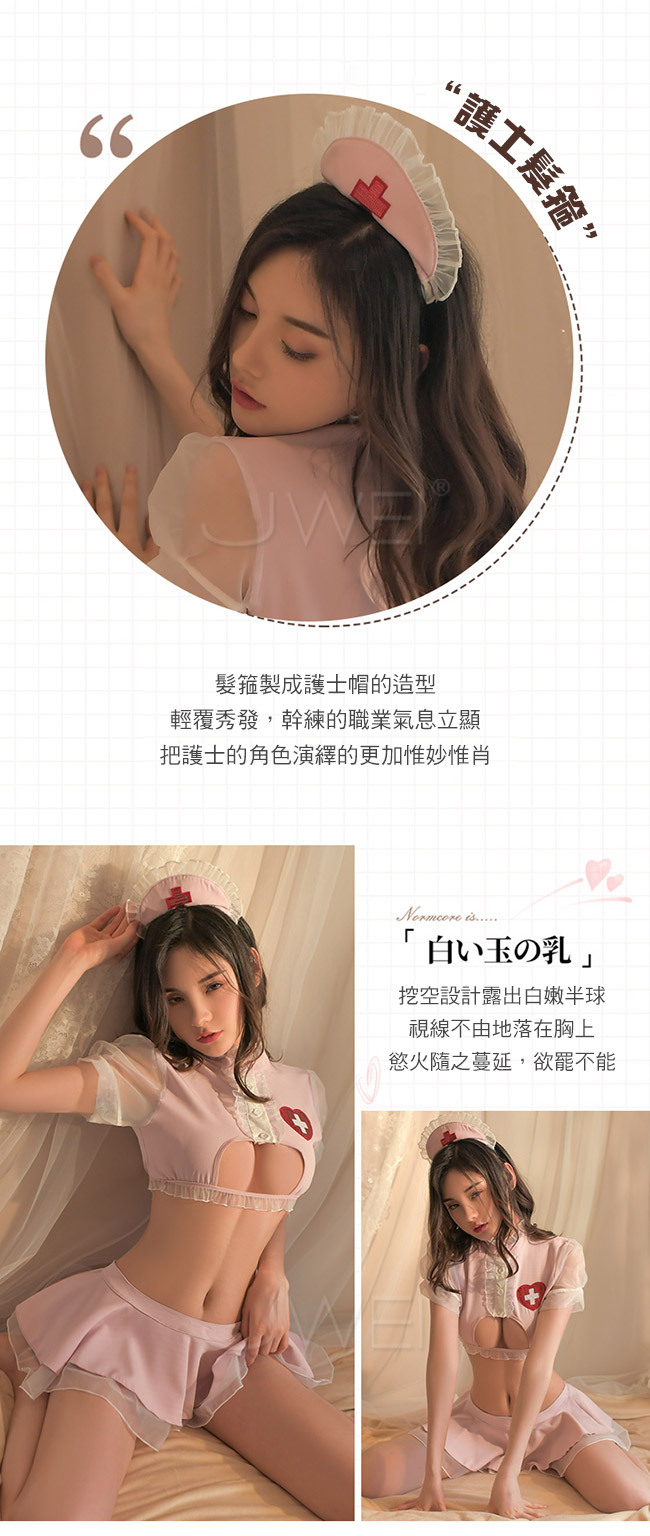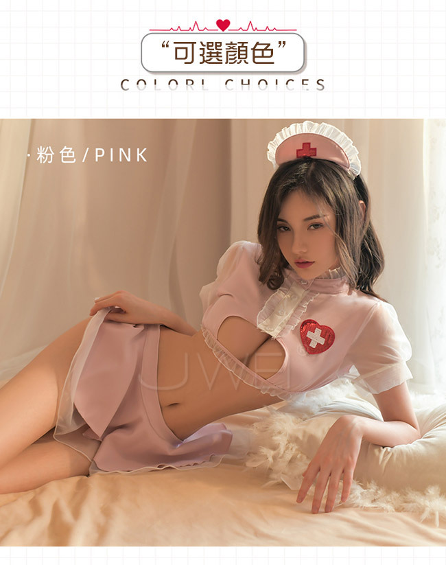 熱辣降臨.性感火辣鏤空護士服火辣件4組(粉色)