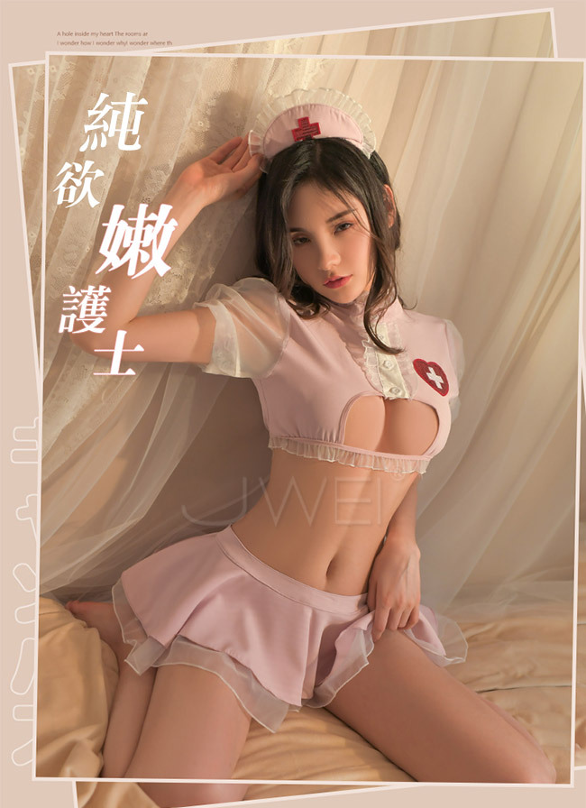 ◇◆熱辣降臨.性感火辣鏤空護士服火辣件4組(粉色)◆◇