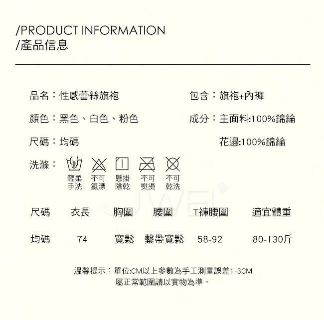 旗袍兩側開衩,自由繫帶設計,胖瘦均可調,更襯女人味。