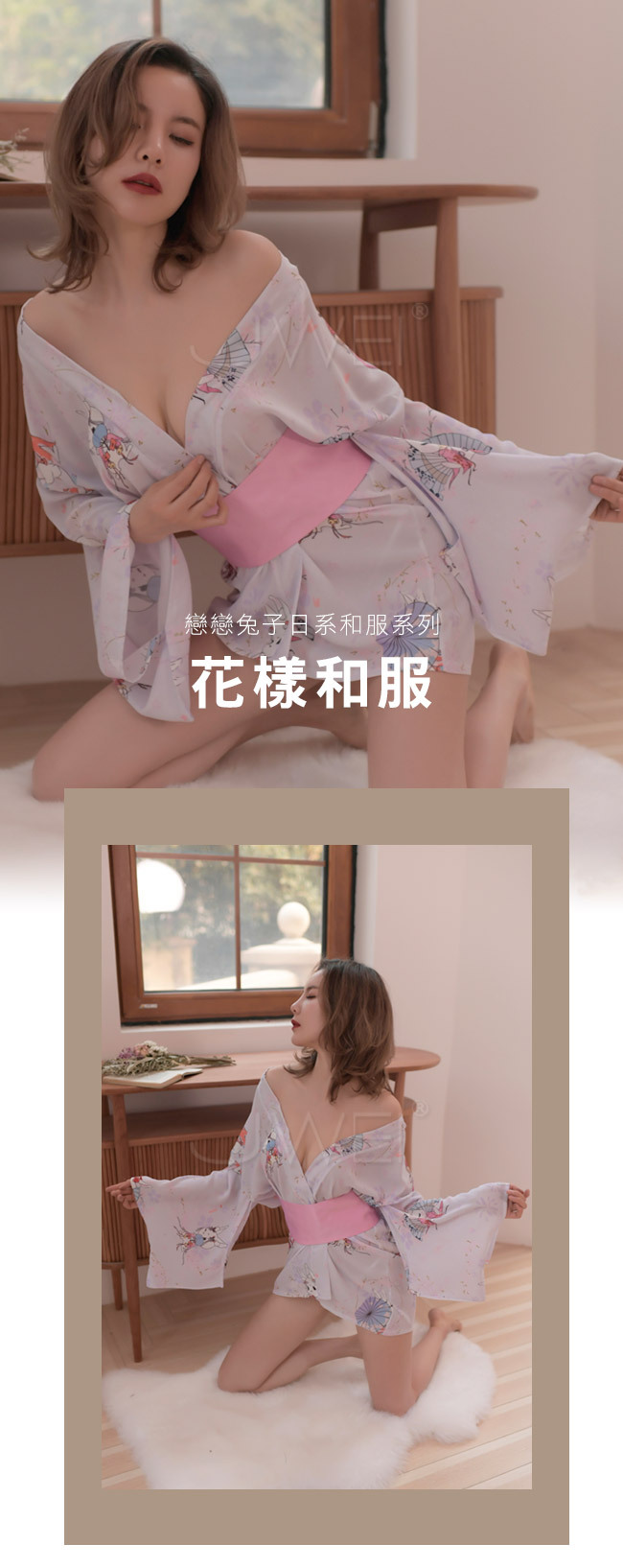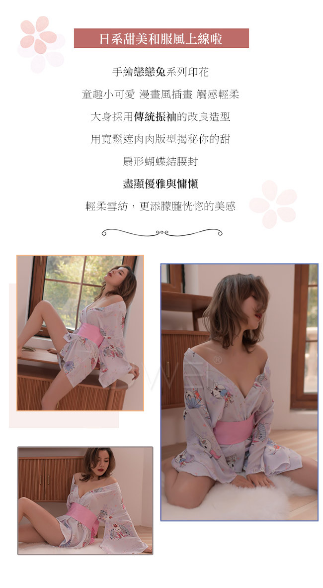 ◇◆戀戀月兔.雪紡印花日式和服套裝3件組(水藍色)◆◇