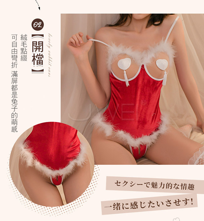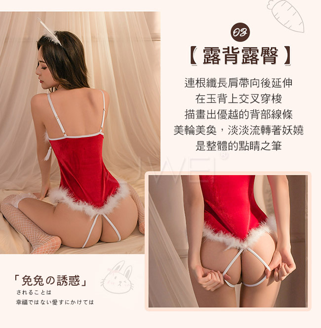 聖誕萌兔.性感露背露臀開檔連體衣(黑色)