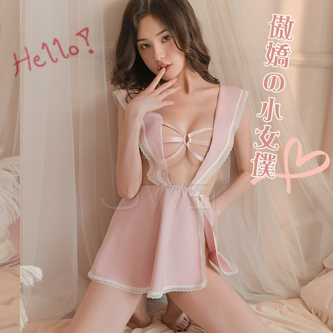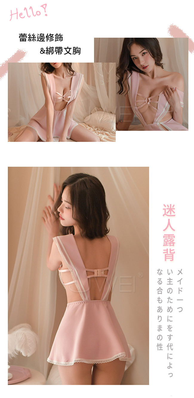 純粹精靈.迷人綁帶文胸露背蕾絲女僕制服2件組