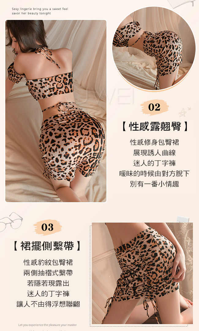 ◇◆催情瑪莉.性感掛脖裏胸裙擺側繫帶豹紋短裙套裝3件組◆◇