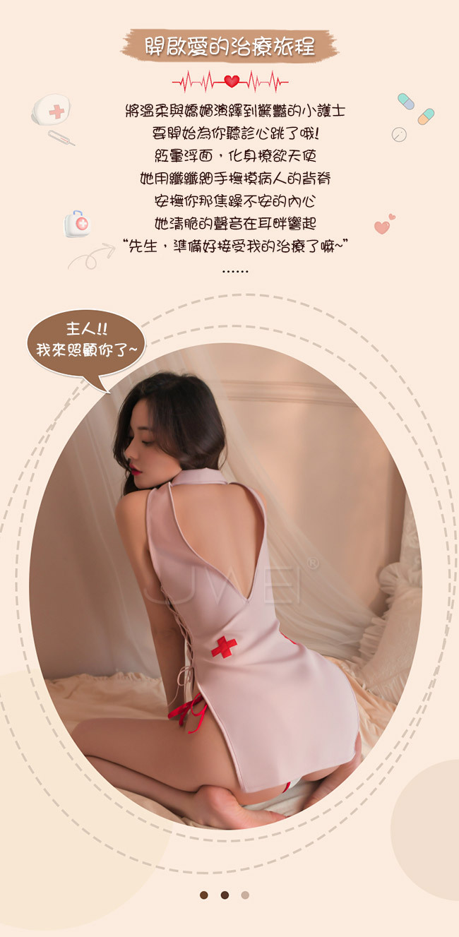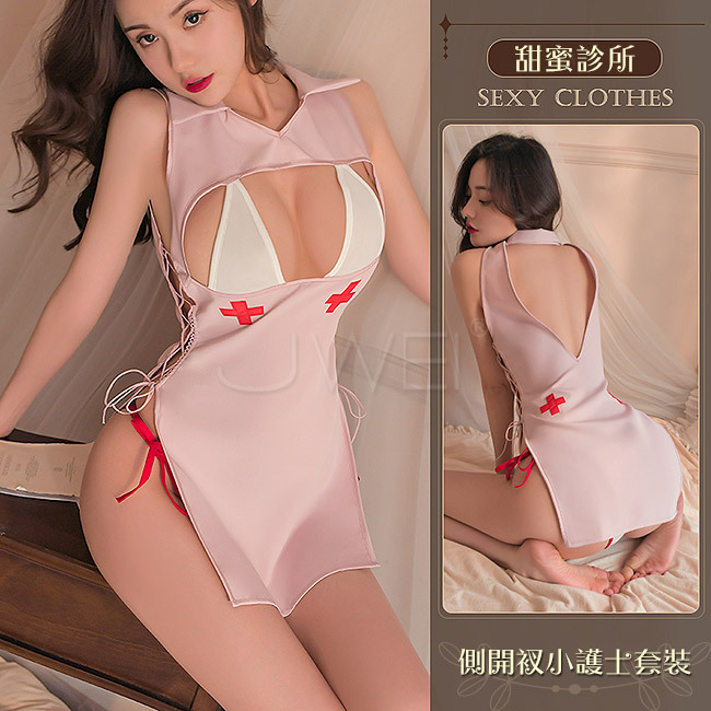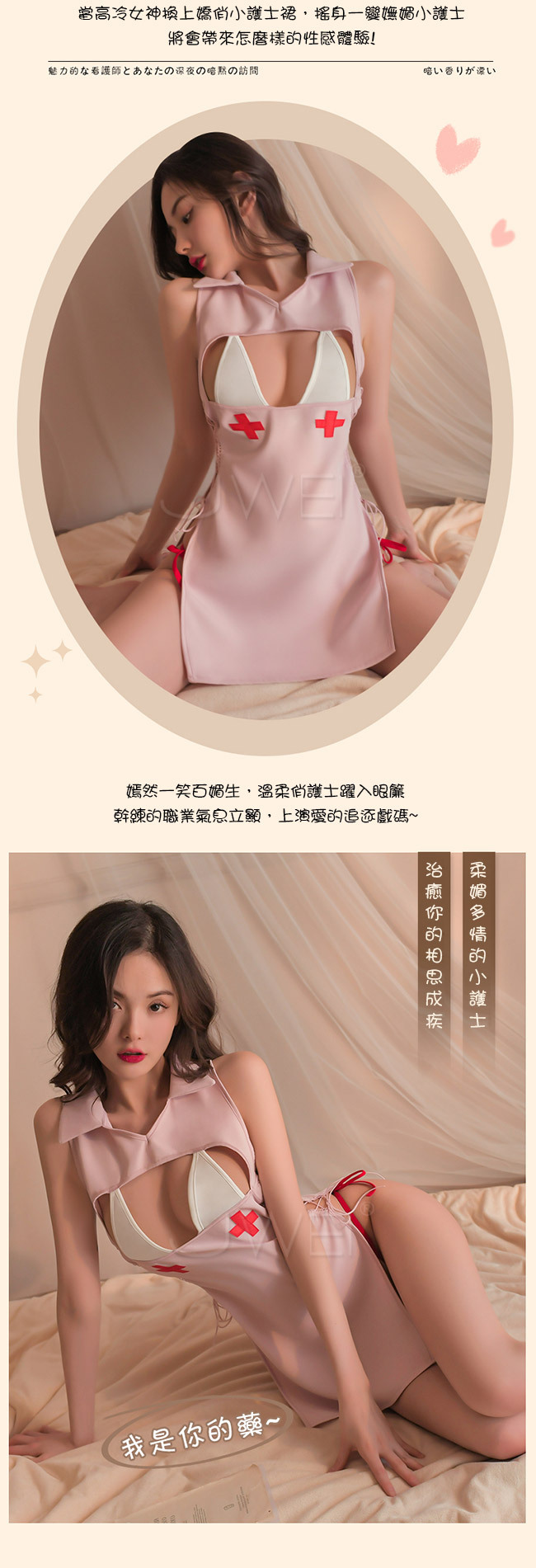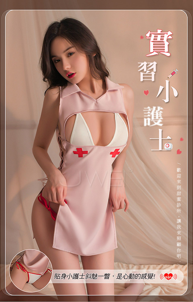 實習小護士.誘惑胸前縷空側開衩護士套裝2件組