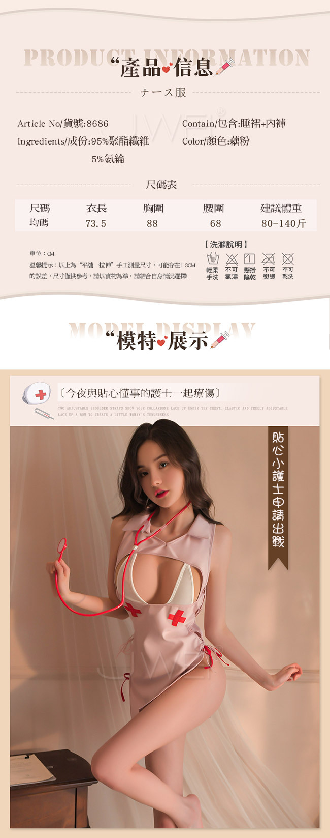 ◇◆實習小護士.誘惑胸前縷空側開衩護士套裝2件組◆◇