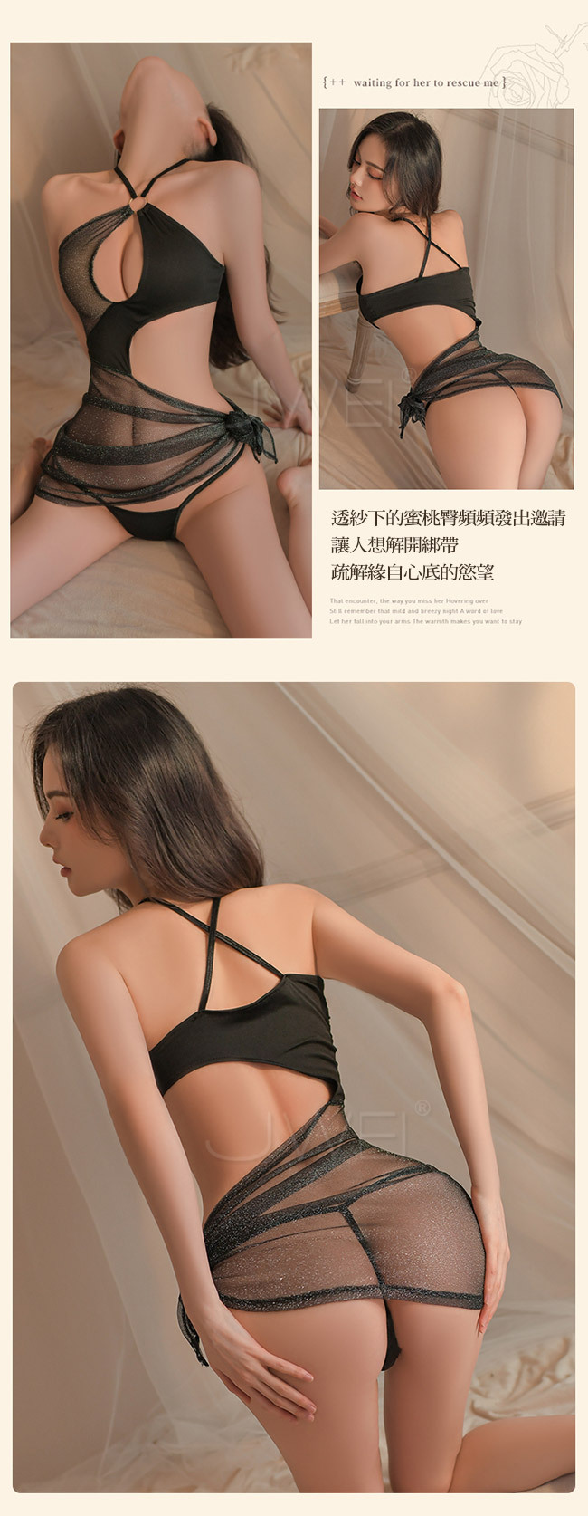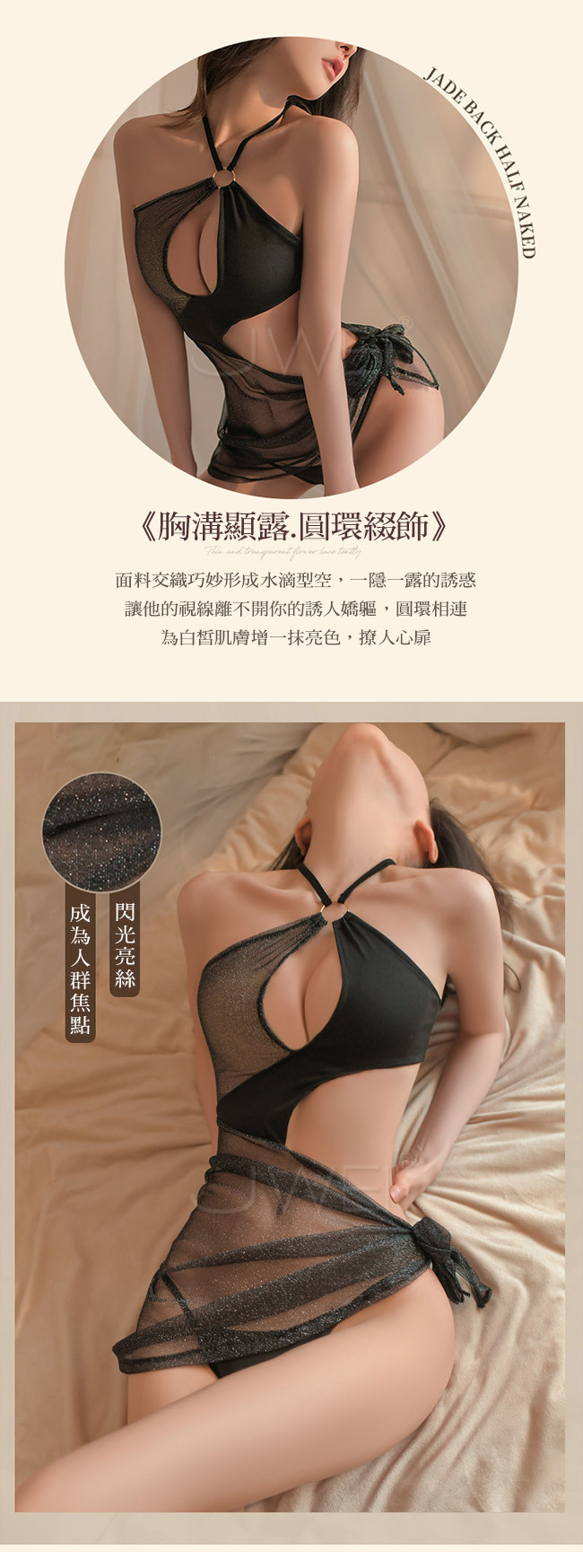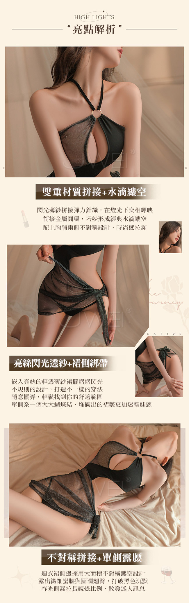 ◇◆縱享迷情夜.心機鏤空亮絲閃光透紗不規格風情連衣裙套裝2件組◆◇