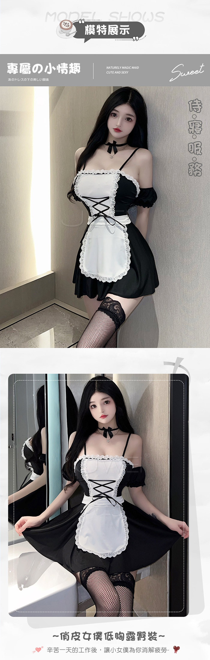 風情小廚娘.性感一字領俏皮女僕扮演制服4件組