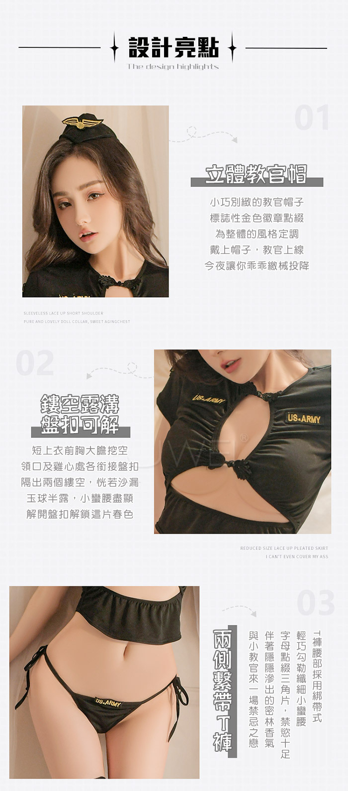 暗黑野蠻教官.前胸大膽挖空露溝兩側繫帶T褲分體套裝3件組