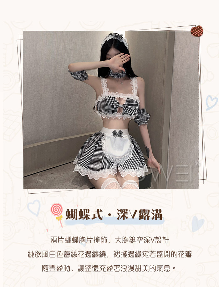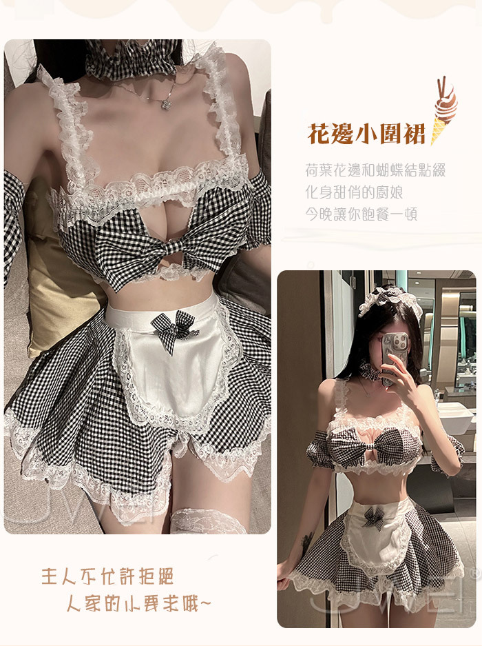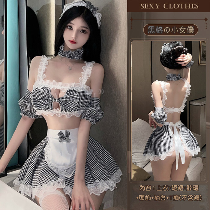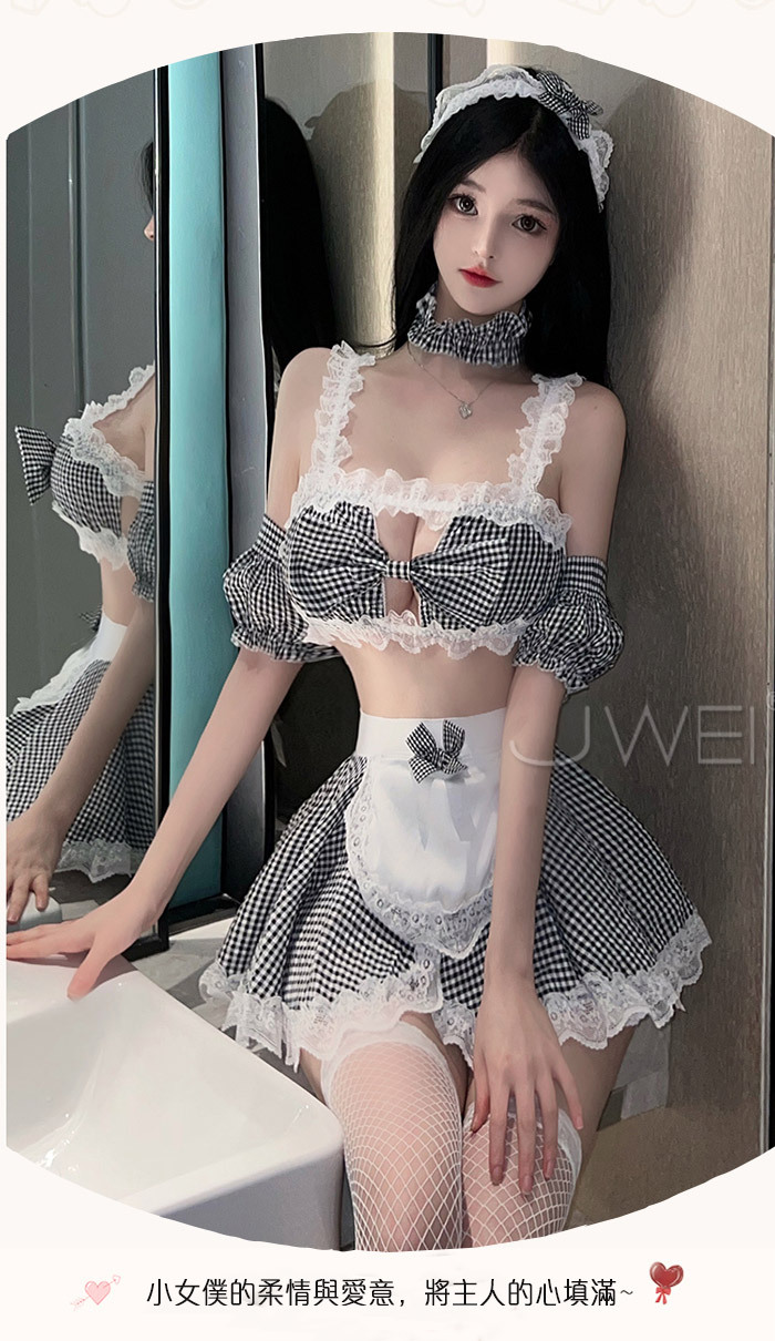 性感禦姐.火辣角色扮演 女傭制服格子套裝-黑格