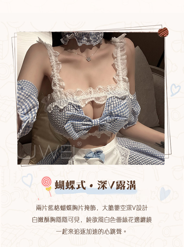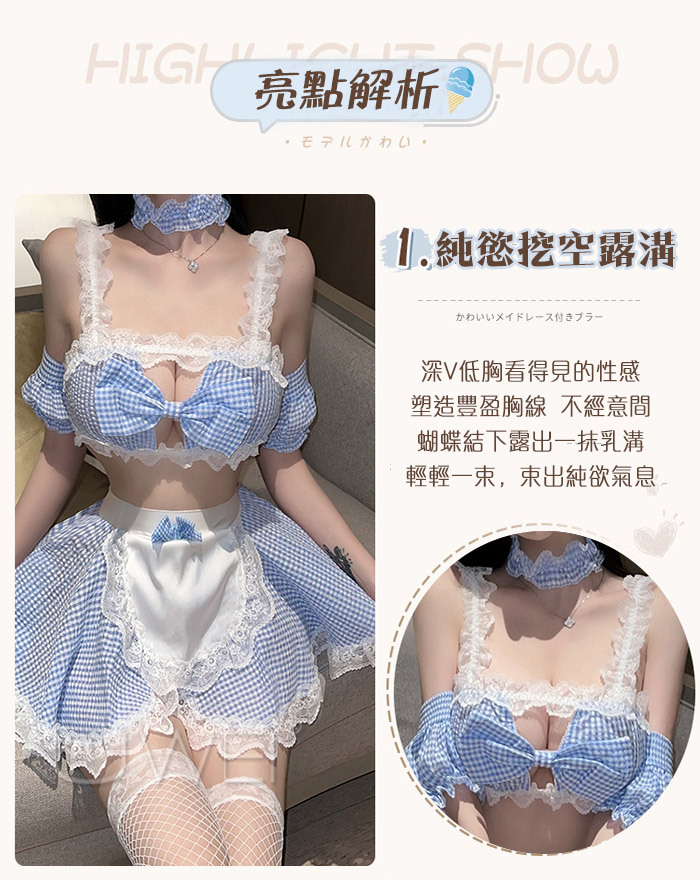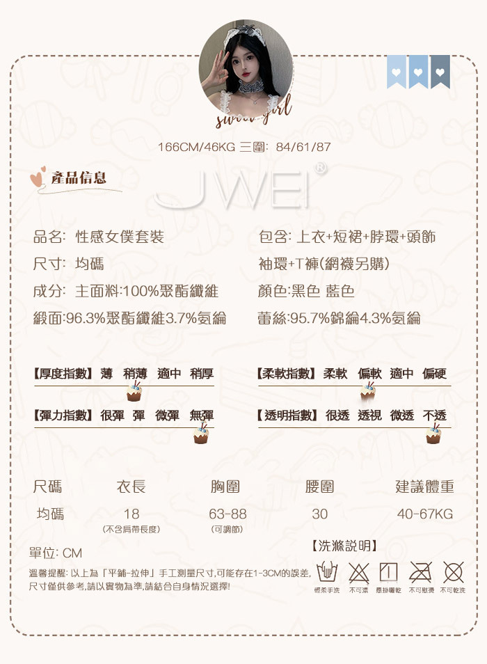 ■內容物:上衣+短裙+脖環+頭飾+袖套+T褲(不含襪)