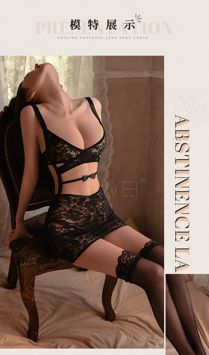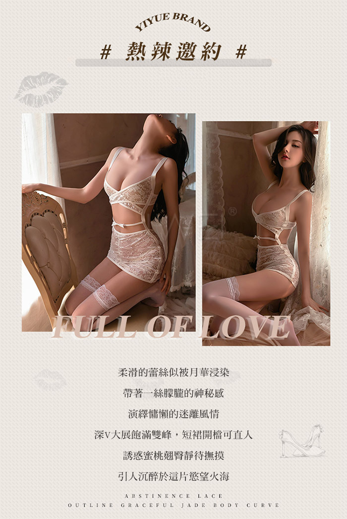 魅惑女郎.純欲蕾絲誘惑包臀裙夜店角色服-白