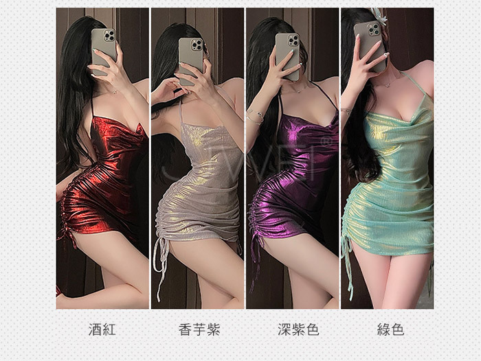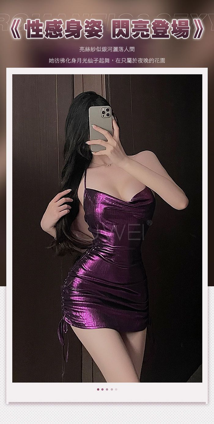 夜場仙女.惹火風情露背深V露溝閃亮性感連身裙-深紫色