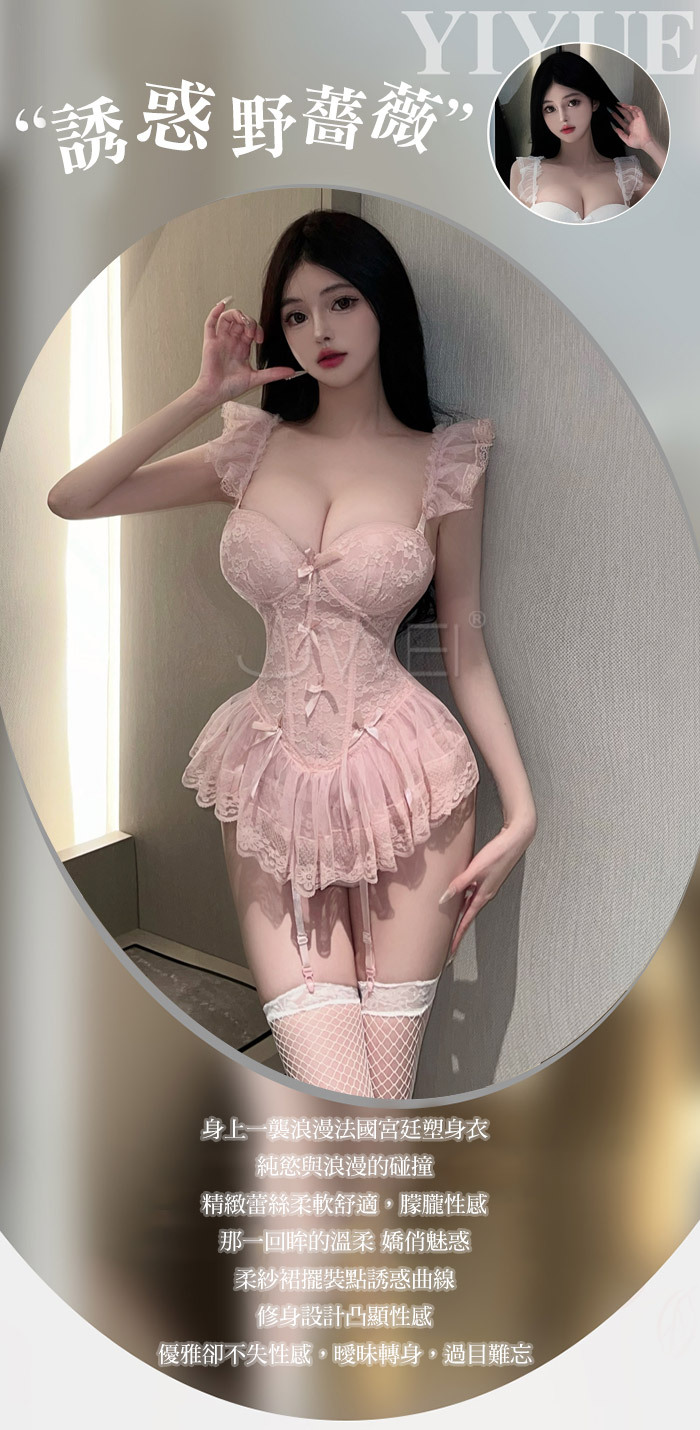 誘惑野薔薇.蕾絲低胸三排扣調節鋼圈棉墊性感馬甲-粉色
