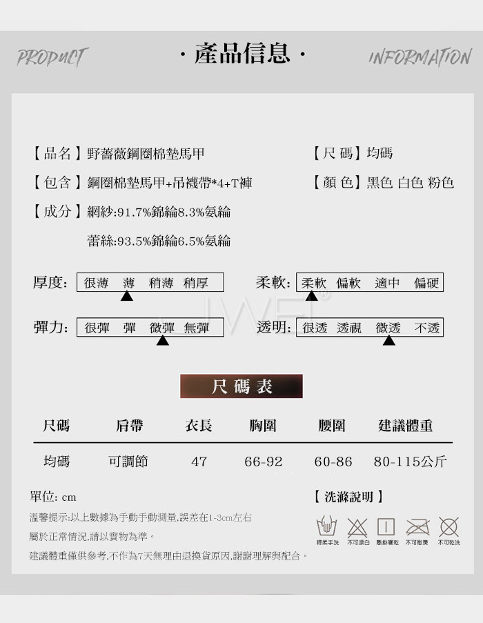 ■內容物:鋼圈棉墊馬甲+吊襪帶*4+T褲