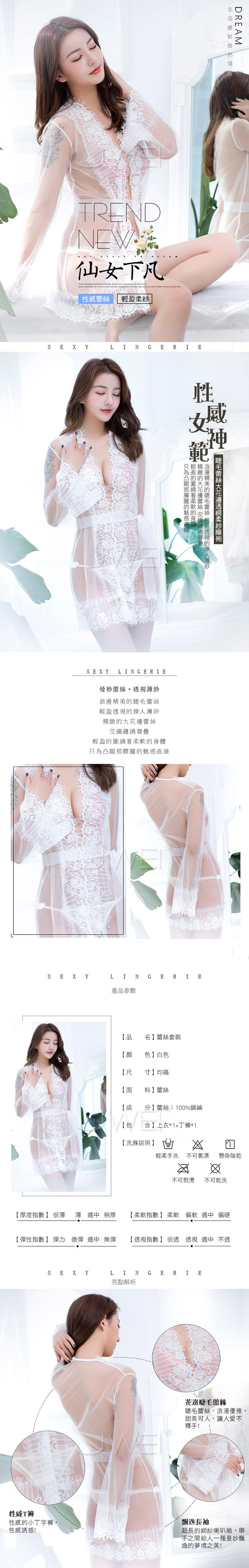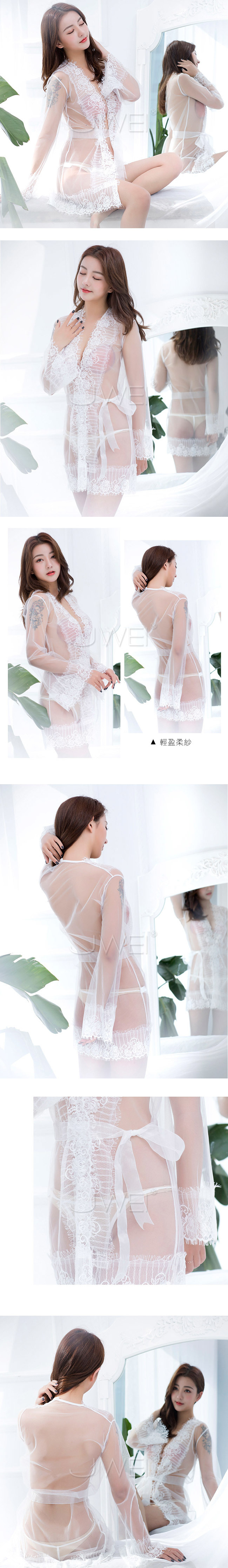◇◆午夜陽光.睫毛蕾絲大花邊透視柔紗睡袍(白色)◆◇
