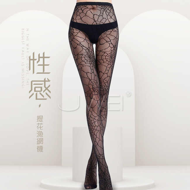 倦戀擁抱.性感透視提花蜘蛛網襪